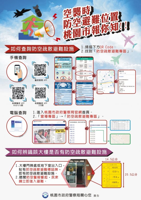 2、 桃園市政府警察局-防空疏散避難宣導專區 https://reurl.cc/pgQORQ。